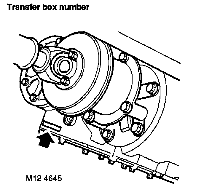 Stamped on the rear of the transfer box casing above the bottom cover plate.