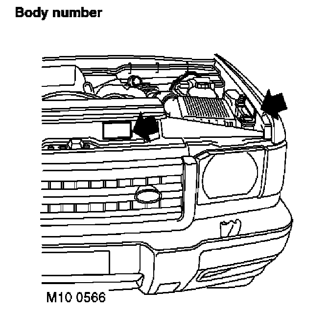 Stamped on a label attached to the LH inner wing behind the headlamp.
