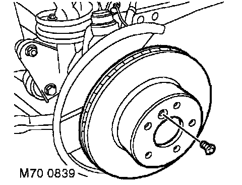 2. Fit brake disc to drive flange, fit screw and tighten to 13 Nm (10 ft. lbs..).
