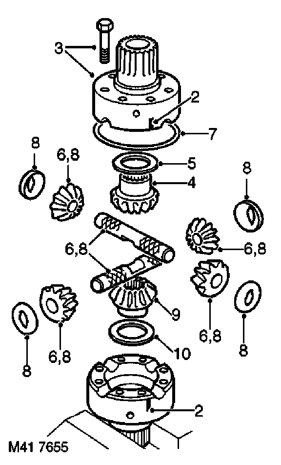 6. Suitably identify each planet gear to its shaft and fitted position of each cross shaft to rear half of carrier