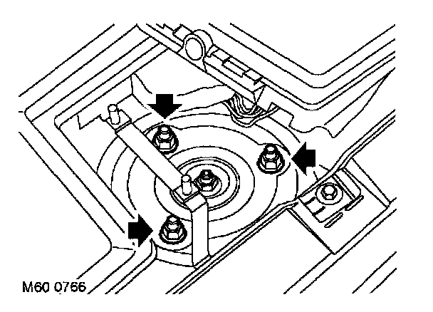 12. Position damper assembly and align top mounting to body, fit nuts and tighten to 45 Nm (33 ft. lbs.).