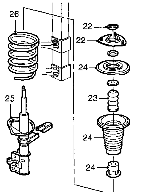 18. Remove 3 nuts from damper top mounting and remove spring and damper assembly.
