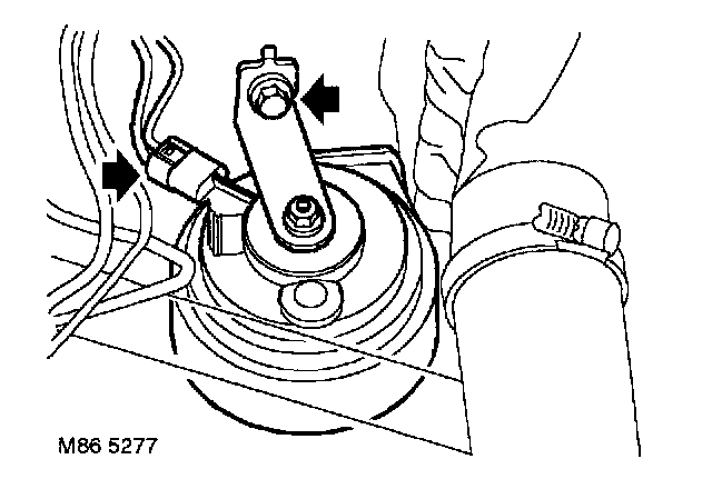 1. Remove bolt securing horn to body.