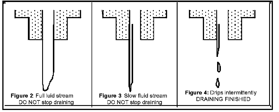 11. When draining of ATF stops (Figures 2-4), install a new drain plug/washer assembly and tighten to 13.5 - 16.5 Nm (9-12 lbf.ft.)