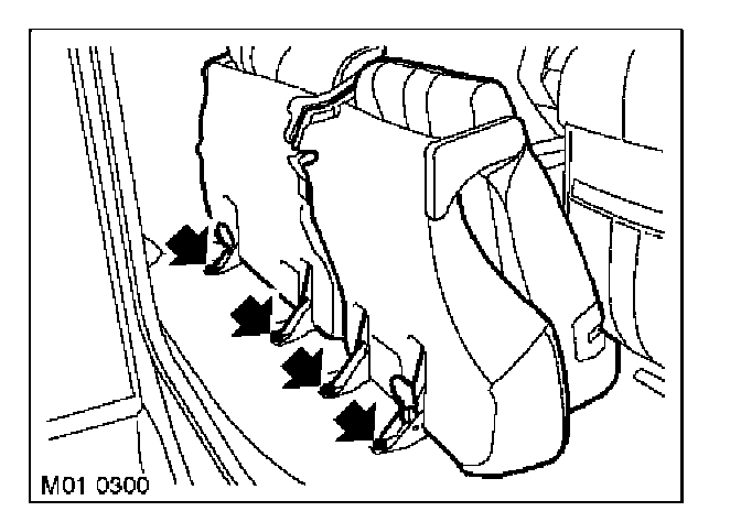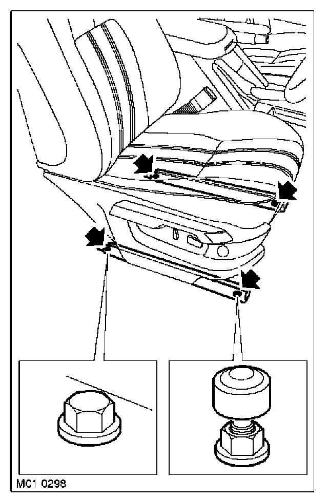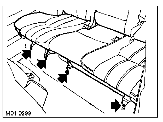 4. Check rear seat catch locking bars are secured to the floor and show no signs of movement.