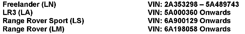 AFFECTED VEHICLE RANGE