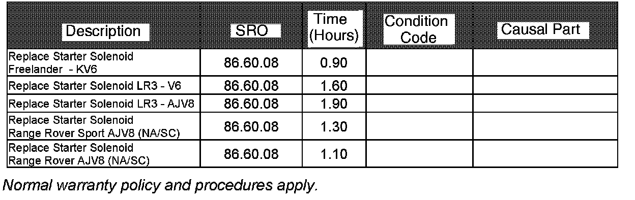 GTR Home> NAS > Service Information/LM - New Range Rover> 2007 > Workshop Manuals> Bookmark "Powertrain/Engine/303-06" Links "Removal and Installation Starter Motor (86.60.01)"