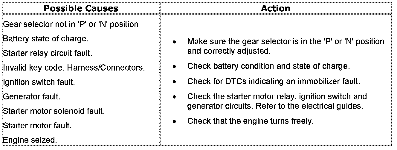The engine does not crank (starter motor does NOT turn)