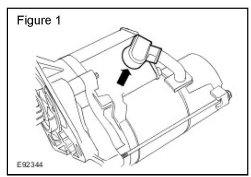 2. Release the starter motor terminal cover. (Figure 1)