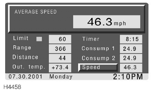 You can access a display of the vehicle's average speed. The average speed is calculated for the period since the engine was last started.
