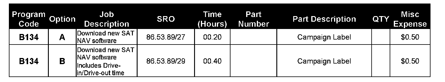 Warranty claims should be submitted quoting program code B134 together with the option code. This will result in payment of stated time and where applicable parts/miscellaneous expense.