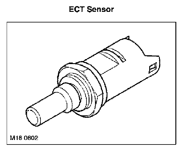 the ECT sensor is located front of the engine, adjacent to the thermostat housing. the sensor incorporates two Negative Temperature Coefficient (NTC) thermistors and four electrical connections. One set of connections are used by the ECM while the other set are used by the instrument pack temperature gauge.