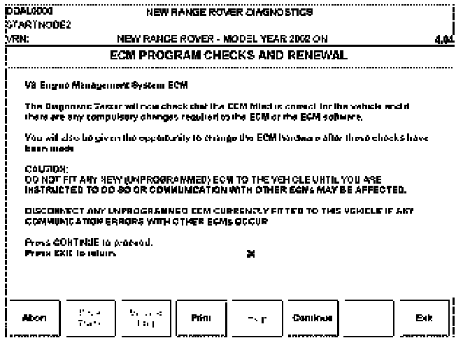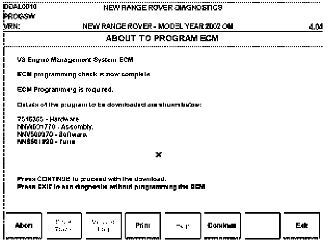 1. To program engine ECU insert disc "Range Rover 12" or later.