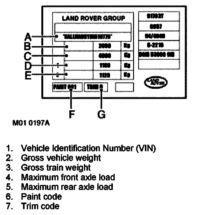 Trim code (G): a code identifying the original trim type and colour is stamped on the VIN plate.