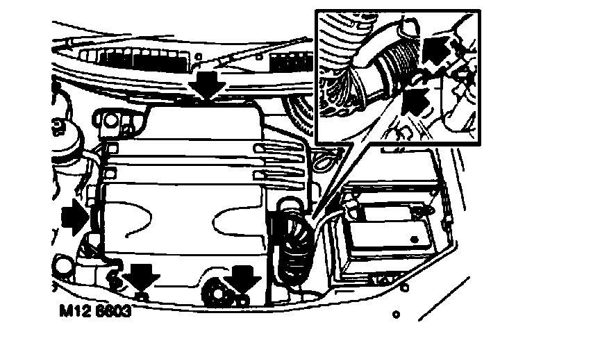 1. Loosen clip and disconnect fresh air intake hose from acoustic cover.