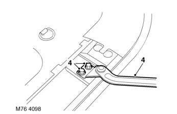 4. Remove 2 bolts from tail door check strap, release strap and position aside.