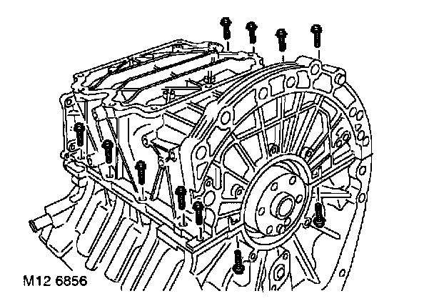 12. Remove 9 M8 bolts and 2 M6 bolts securing lower crankcase to cylinder block, release and remove lower crankcase.