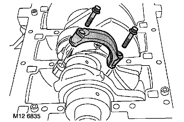22. Rotate crankshaft, remove bolts securing remaining connecting rod bearing caps and remove bearing shells.