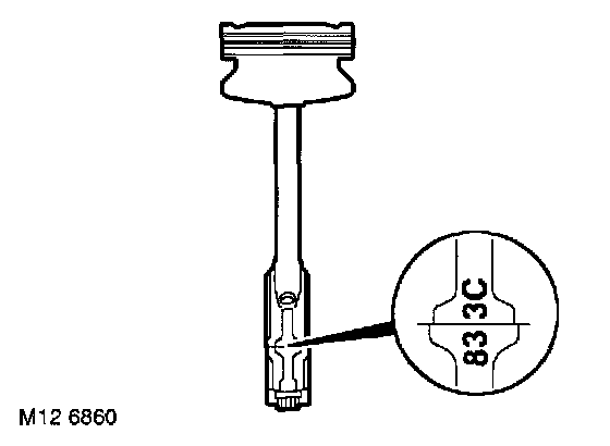NOTE: Number stamped below bearing cap bolt is bearing bore size code. Number stamped on connecting rod is cylinder number and letter is weight code.