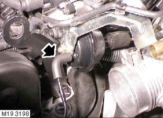 17. Non NAS models: Fit vacuum/breather pipe to throttle body and connect pipe to LH and RH camshaft covers.