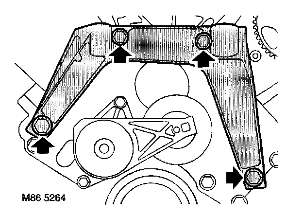 3. Remove 4 bolts securing engine mounting bracket to engine front plate and remove bracket.