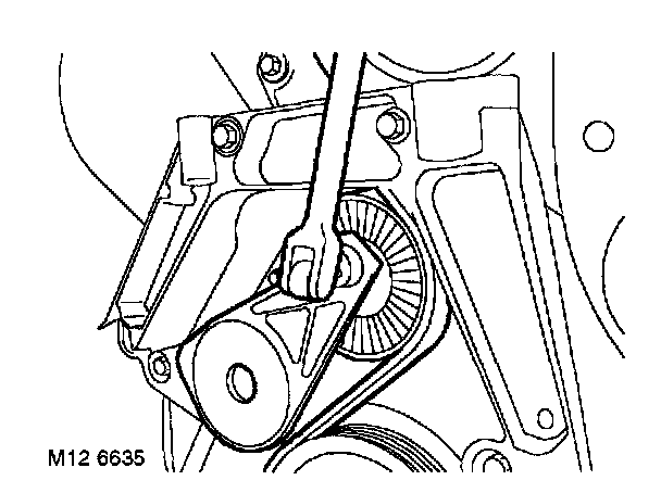 4. Using a 3/8" square drive socket bar, raise ancillary drive belt tensioner and release drive belt from alternator pulley.