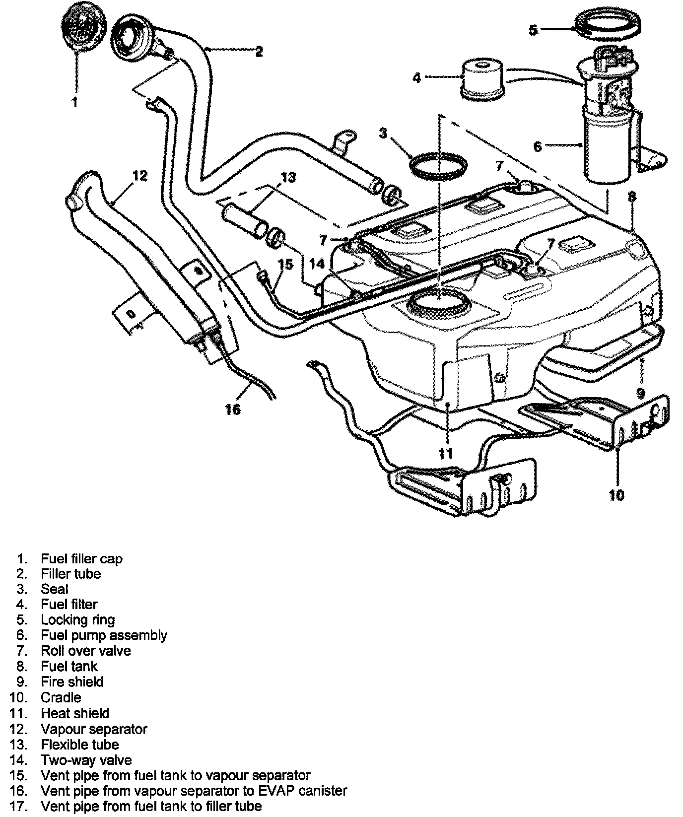 The Fuel Filter is located within the fuel pump and in a plastic body which incorporates a coarse mesh filter and a serviceable fine mesh filter.