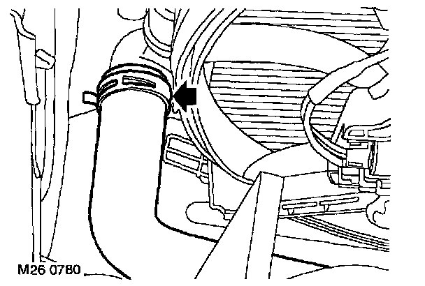 8. Release clip and remove bottom hose from radiator.