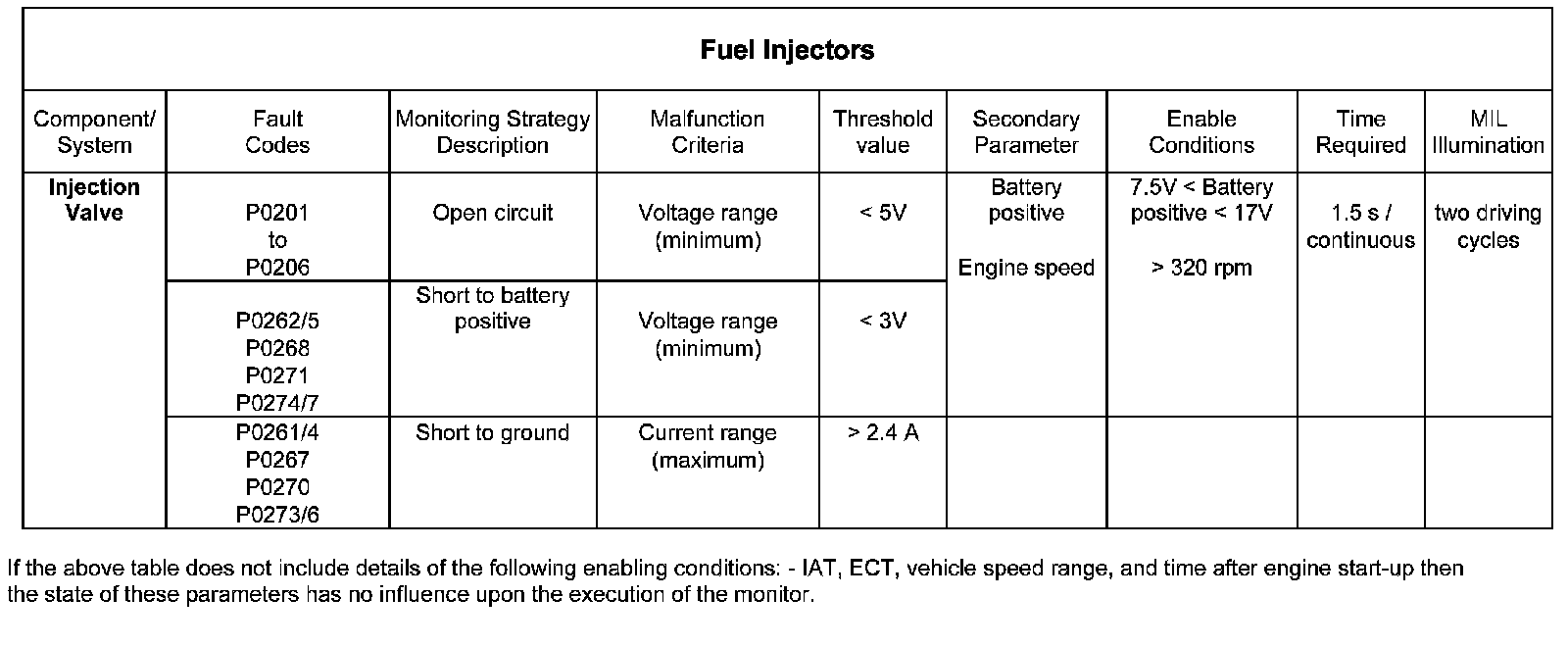 3. Fuel injector driver open circuit, i.e. the driver voltage is less than 5 V.