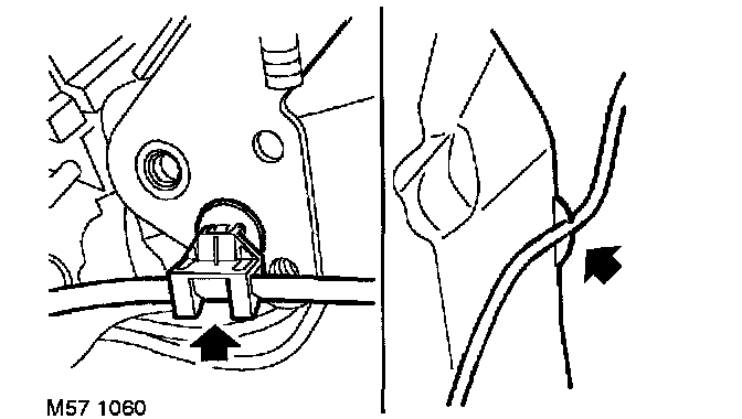 1. Position cable, align to heater and steering column bracket and secure in retaining clips.