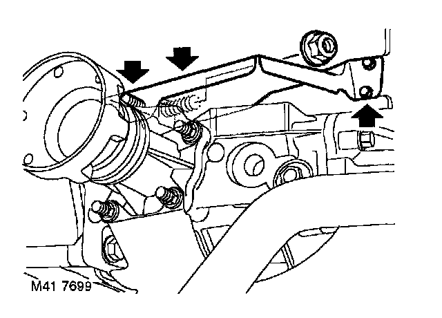^ 2 bolts securing support bracket to engine front mounting bracket 50 Nm (37 ft. lbs.)