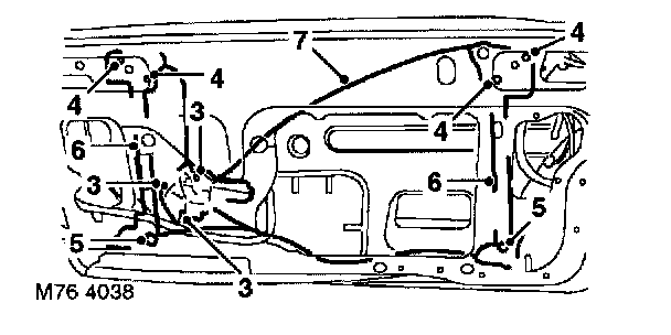 6. Release regulator from door and detach electrical harness from LH glass clamp.