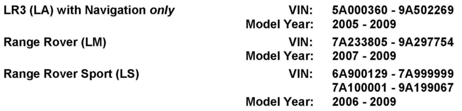 AFFECTED VEHICLE RANGE