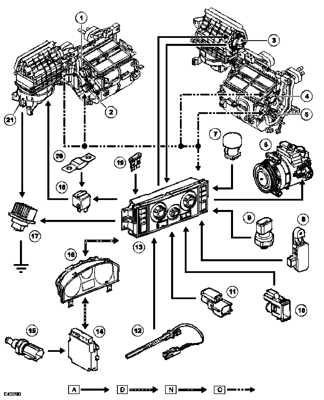 AUTOMATIC SYSTEM CONTROL DIAGRAMNOTE: A = Hardwired connections; D = High speed CAN bus; N = Medium speed CAN bus; O = LIN bus