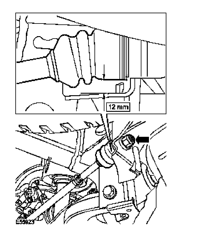 ^ Set the gap, between the underside of the toe link rubber boot and the integrated body frame bracket, to 12 mm (0.473 in).