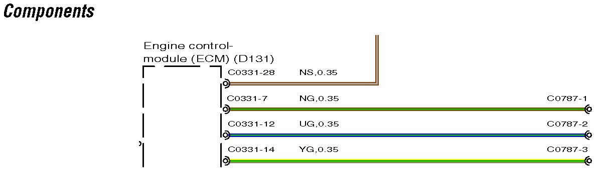 After each component description, a translation code is displayed in brackets, for example: Starter relay (R102), Engine control-module (ECM)(D131). The codes can be ignored.