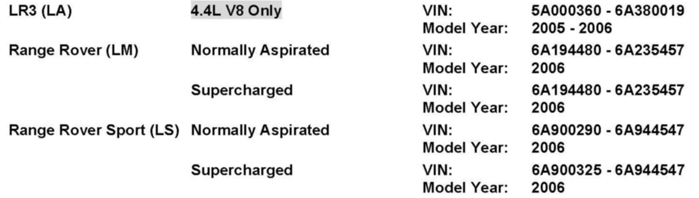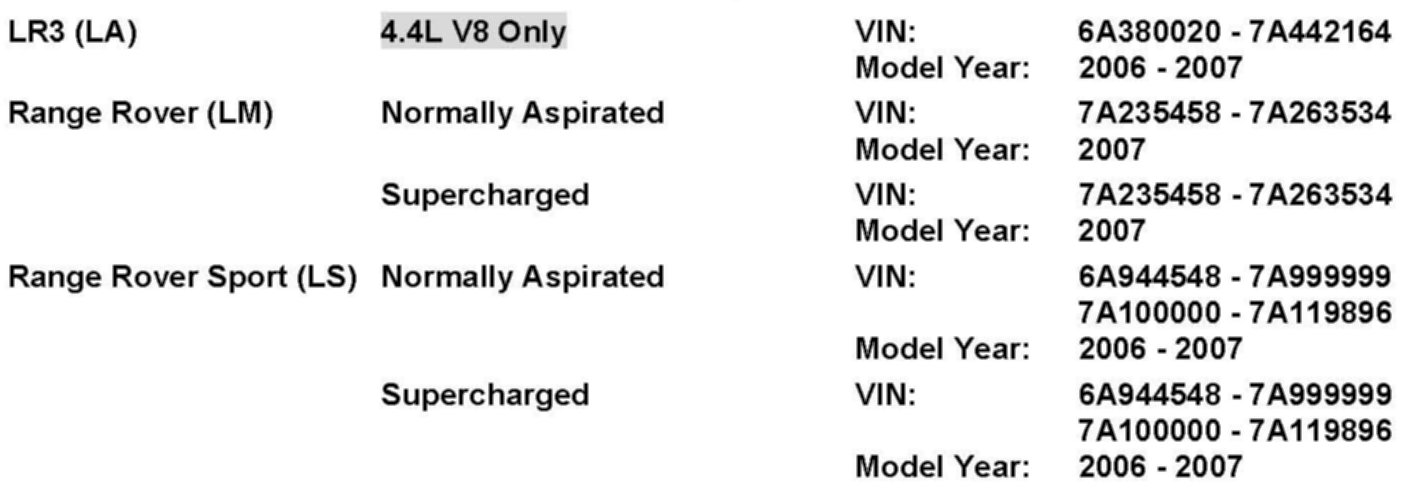 AFFECTED VEHICLE RANGE (ECM ONLY)