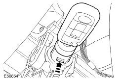 ^ Insert a pin, not exceeding 2 mm diameter, through the access hole in the ignition lock cylinder housing to depress the plunger, and release the ignition lock cylinder.