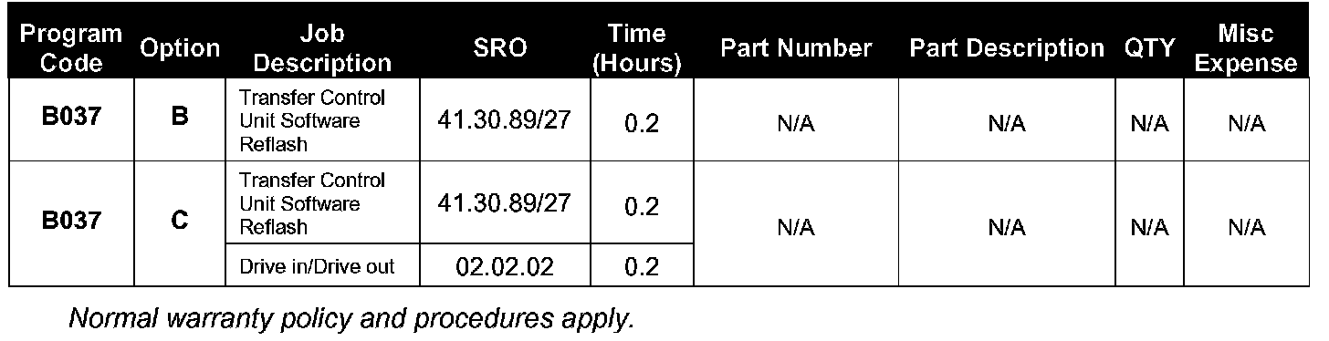 Warranty claims should be submitted quoting program code B037 together with the appropriate option code. As option codes are used, there is no requirement to enter parts or labor. They are provided for information only.