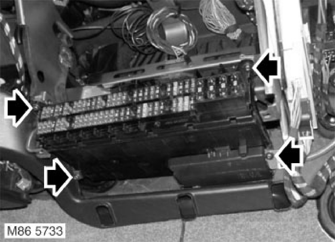 4. Remove 4 Torx screws securing fuse box and position fuse box aside.