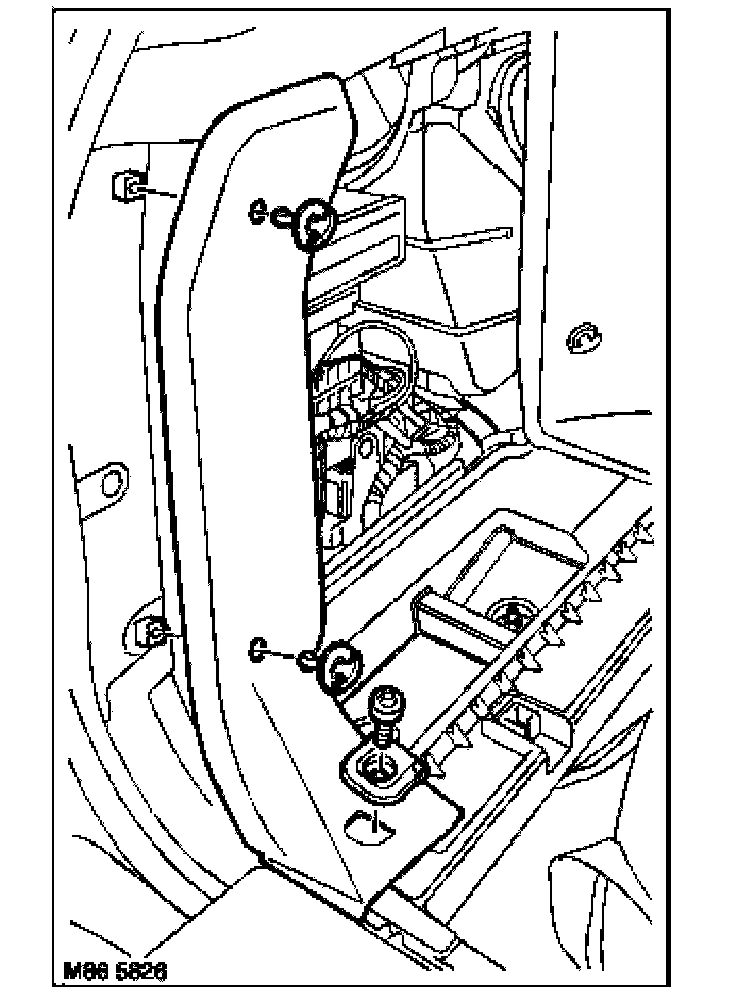 6. Remove 2 turnbuckles securing load space LH rear trim casing.