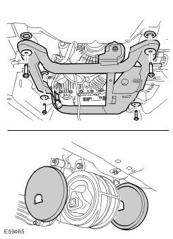 2. With assistance, install the transmission support crossmember.
