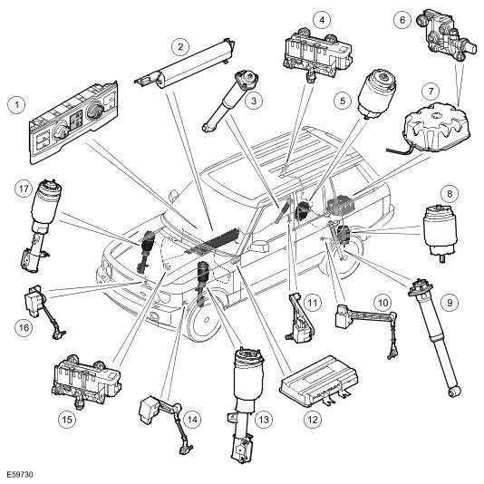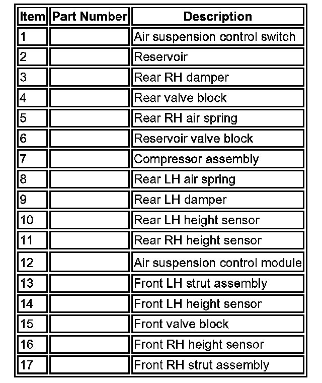 AIR SUSPENSION COMPONENT LOCATION (PART 1):