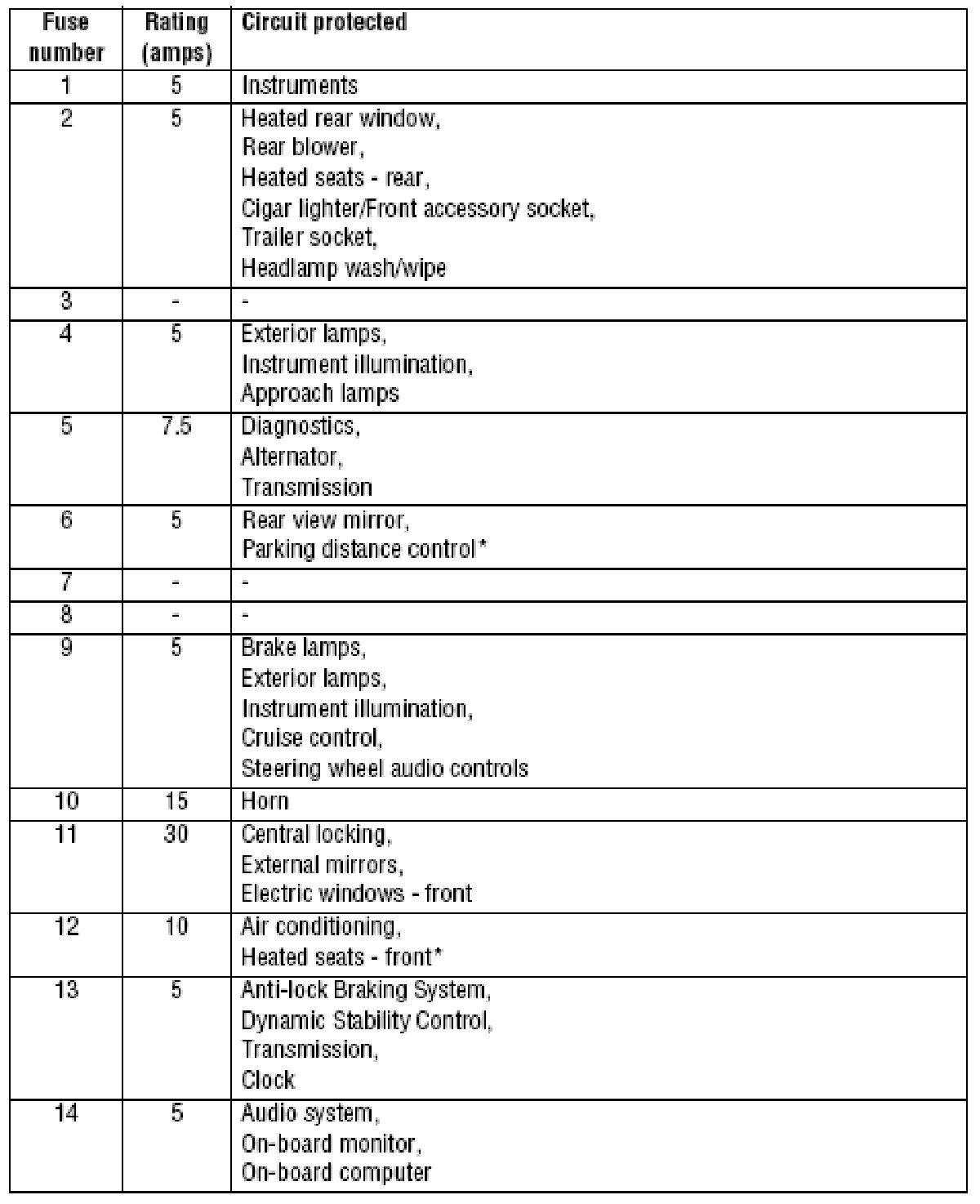 Fuses 1 - 14: