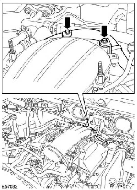 12. Disconnect the refrigerant lines from the air conditioning (A/C) compressor.