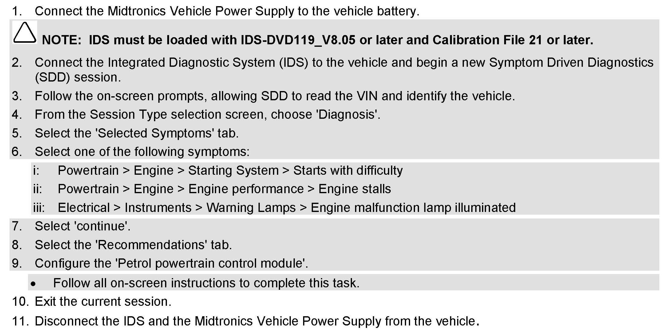 A Land Rover-approved Midtronics Vehicle Power Supply must be connected to the vehicle battery during diagnosis.