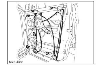 6. Remove 3 Torx bolts securing regulator to door frame and withdraw regulator through access panel.