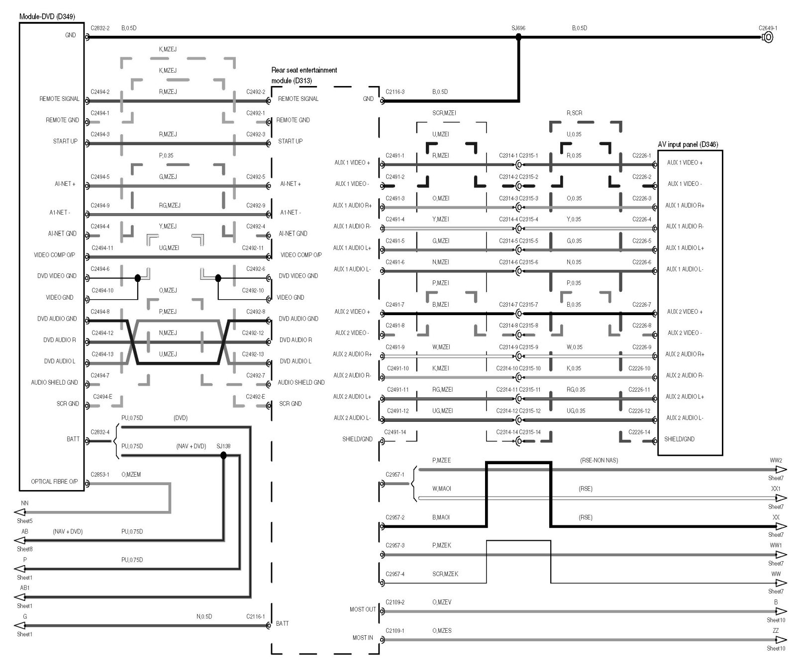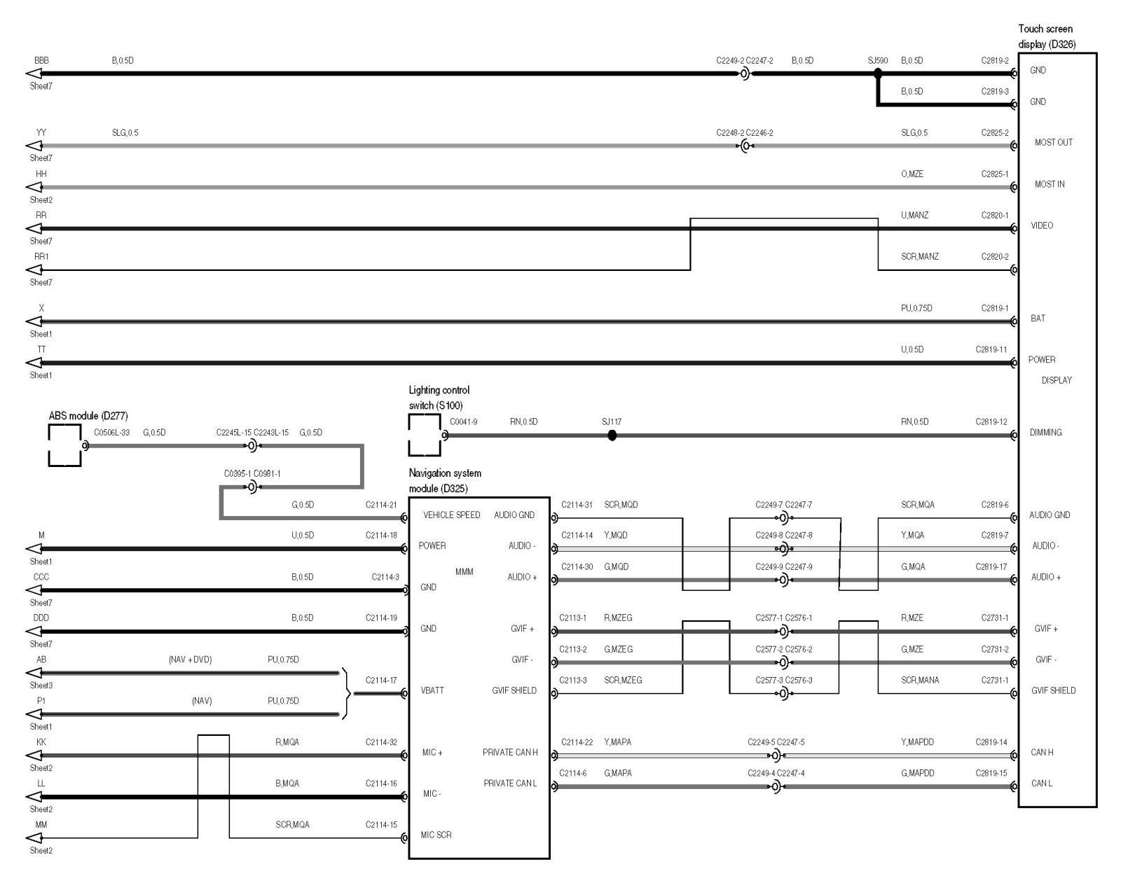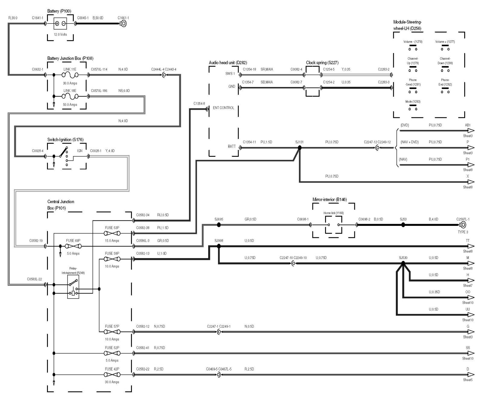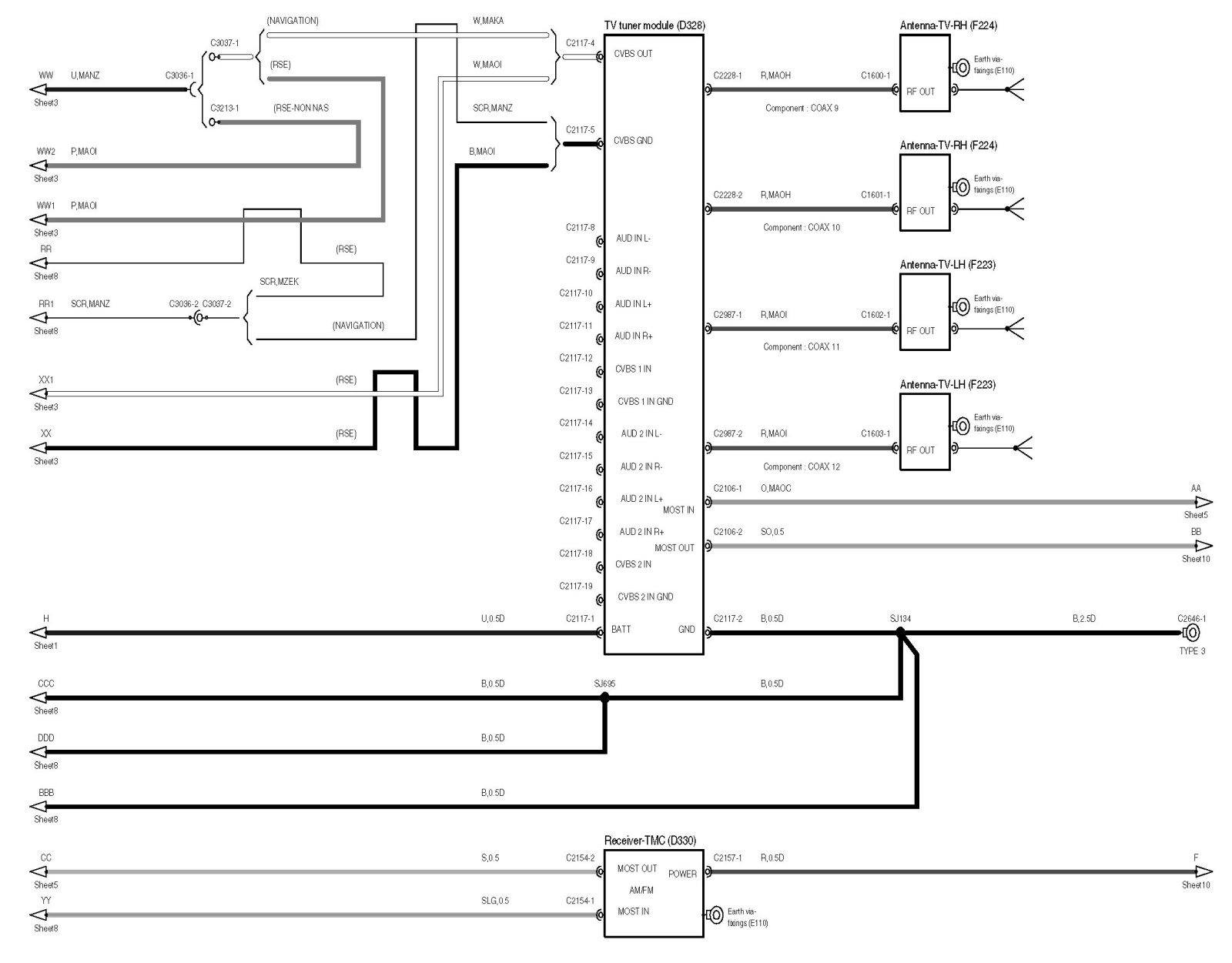 Locations: The location views for connectors and components depicted within these diagrams can be found via the connector's base number (i.e. C0570) at Vehicle/Locations/Connectors. Locations