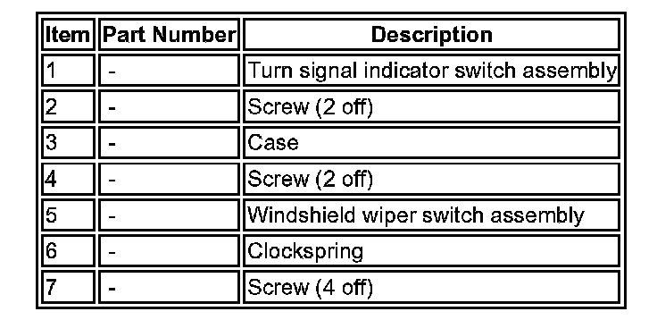 The steering column multifunction switch comprises a case which houses a turn signal indicator switch assembly, a windshield wiper switch assembly and a clockspring. The multifunction switch is located behind the steering wheel and is secured with two screws at the top to the steering column assembly and two screws at the bottom to the column lock housing.