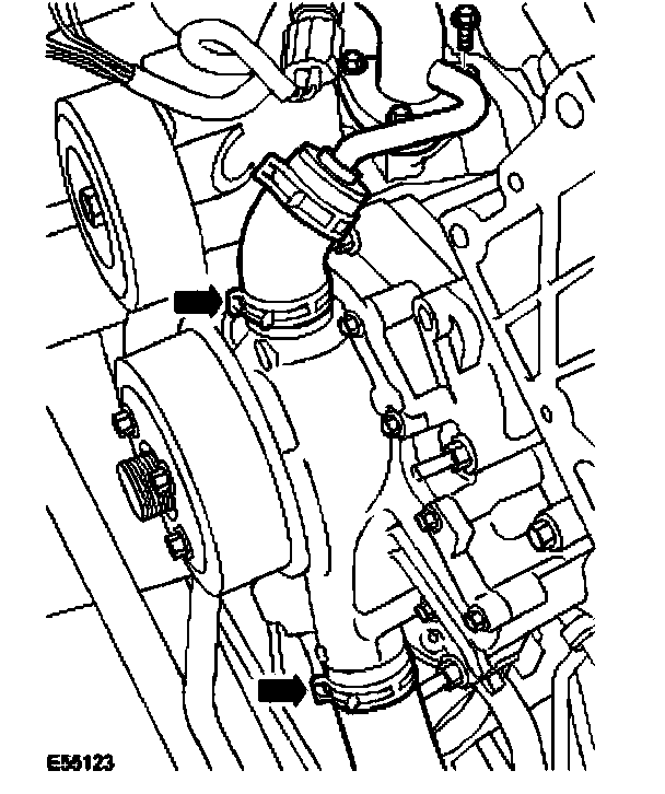 ^ Release the cylinder head coolant flange, to aid coolant hose removal.